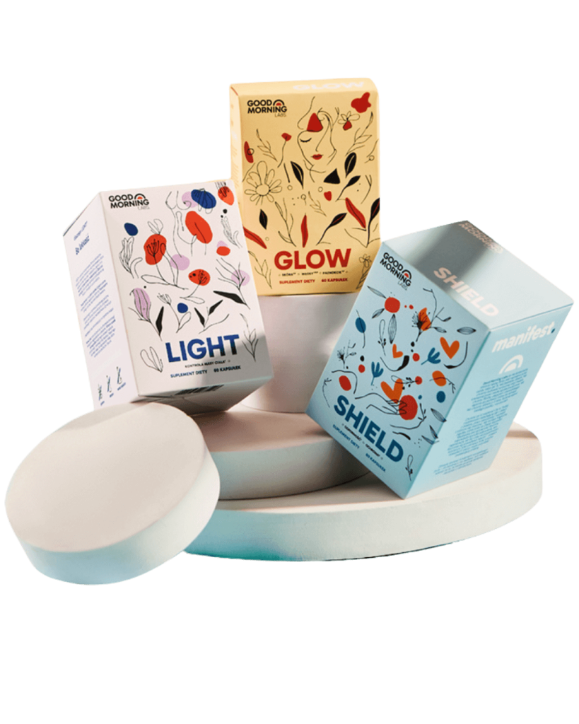 Tak, o ile składniki nie powielają się w dużych dawkach. Suplementy Good Morning Labs zostały opracowane tak, by się uzupełniały — SHIELD (odporność), GLOW (uroda), LIGHT (metabolizm).